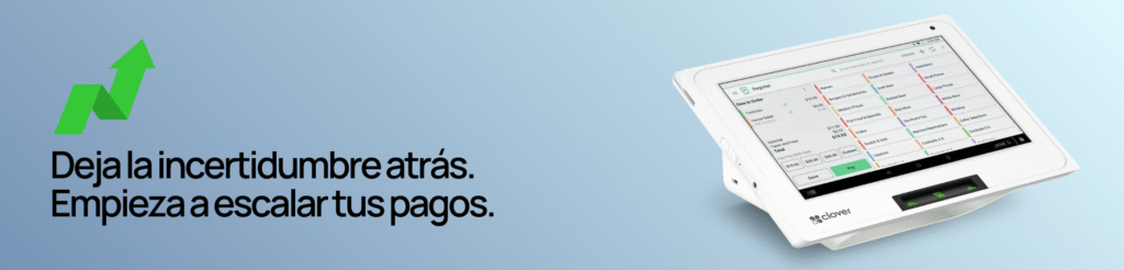 En este paso, el cliente presenta su información de tarjeta de crédito para pagar. Si tienes un negocio físico, esto ocurre en el punto de venta. Los terminales de pago modernos, como Clover Mini y otros equipos móviles disponibles en Puerto Rico, facilitan los pagos sin efectivo mediante tap to pay. Para restaurantes, existen sistemas POS especializados que integran el procesamiento de pagos con la gestión de pedidos. Por ejemplo, el cliente puede acercar la tarjeta (“tap”) al terminal de pago. También puede insertarla (“dip”) para completar la transacción.