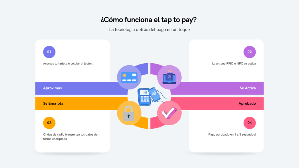 Durante la pandemia del COVID-19, una alternativa despegó con fuerza: el pago por aproximación, también conocido como tap-to-pay. Este método se basa en tecnología RFID, es decir, identificación por radiofrecuencia.